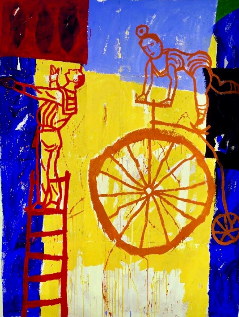 O painel L’Équilibriste (O Equilibrista) alude ao delicado equilíbrio que se deve manter frente às complexidades da vida, utilizando formas e figuras abstratas inspiradas do universo do circo, como metáfora visual do equilíbrio a ser buscado.